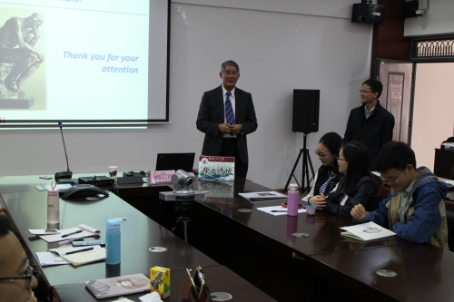 讲座前,覃礼堂博士对Geoffrey教授作了简要的介绍。Geoffrey教授首先对论文的结构作了简要分析,并对世界范围内稿件的拒稿率作了统计,接着提出了他本讲的核心内容:写论文要明确受众是编辑和读者,因此要保持论文的简短与简洁。接着Geoffrey教授围绕着核心思想,通过举例进一步阐述论文写作的观点和投稿建议。同时,同学们就讲座的内容向Geoffrey教授提出了自己的问题,Geoffrey教授和学生们积极互动,耐心地解答同学们疑惑。最后教授对本次讲坛做了详细总结,并提醒同学们不要盲目投稿。